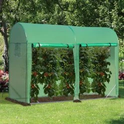 Outsunny 3 ft. W x 6 ft. D x 3 ft. H Steel Green with 2 PE/PVC Covers and 2 Roll Up Windows