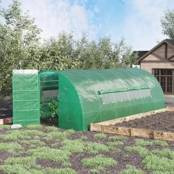 Outsunny Large 10 ft. W x 19 ft. D x 7 ft. H Galvanised Steel Green Walk-in Tunnel Greenhouse
