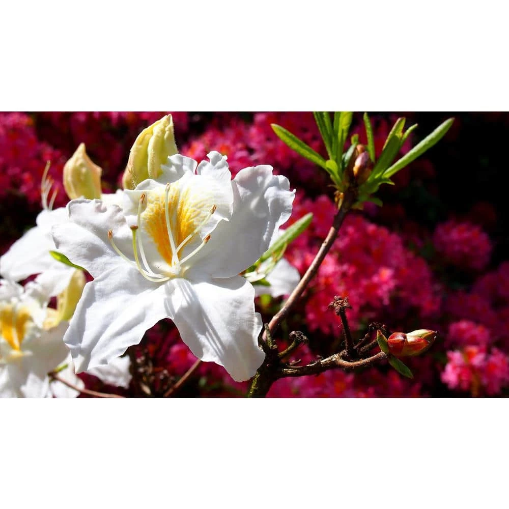 Northern Highlights is 1 Azalea cultivar which truly shines in any landscape, from Michigan to Florida. These gorgeous blossoms open pure white and gradually gain their creamy-white tinge as they mature, all the while retaining their signature yellow splash on the inside. Appearance is not everything with this beauty however, the powerful fragrance emitted by these large blossoms is an even more attractive feature than their mixture of colors. A great quality of Northern Hi-Lights is the compact form it displays throughout its growth. This Azalea Shrub will only reach a height between 4 ft. and 5 ft., with an equal spread of also 4 ft. to 5 ft. Another great feature of all Azaleas in general is that they can be kept even smaller if desired with regular pruning. The Northern Hi-Lights Azalea is both a member and a breakout star of the Northern Lights series of plants developed by the University of Minnesota. The overarching goal of the Northern Lights series was to bring the same elements of splendor and elegance so well-known in Southern gardens to Northern climates as well. All plants were developed with cold-hardy attributes and Northern Hi-Lights is no exception, producing its dazzling blossoms all the way down to minus 30°. The Northern Lights Azalea is a unique and cold hardy shrub, appealing to multiple senses with its beautiful blend of yellow and white coloring, as well as the powerful fragrance which you can enjoy all through spring.
