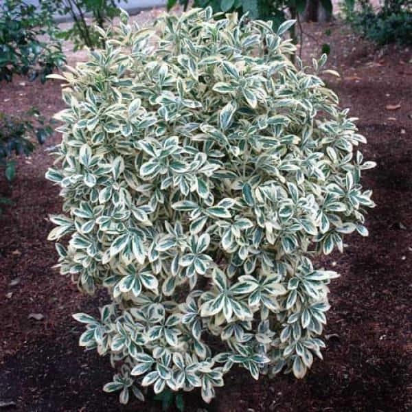 The Silver Queen Euonymus is a lively columnar broadleaf evergreen shrub that is highly prized for its colorfully variegated foliage that keeps its space in a landscape filled with year-round color. The key difference between Silver Queen and other evergreen/variegated Euonymus cultivars is its narrow, slender form that makes for a more formal visual impact in a garden, elevating the design at a foundational structure rather than simply using color schemes. The foliage is notably colorful however, boasting dark emerald-green centers with silvery-white trimmed edges. The Silver Queen Euonymus Shrub lives most comfortably in USDA Cold Hardiness Zones 5-9 and reaches a height of 10 ft. with a spread of 6 ft. Silver Queen is often planted in rows to highlight its columnar form and colorful foliage but is also chosen to accentuate deciduous plants with its evergreen leaves.
