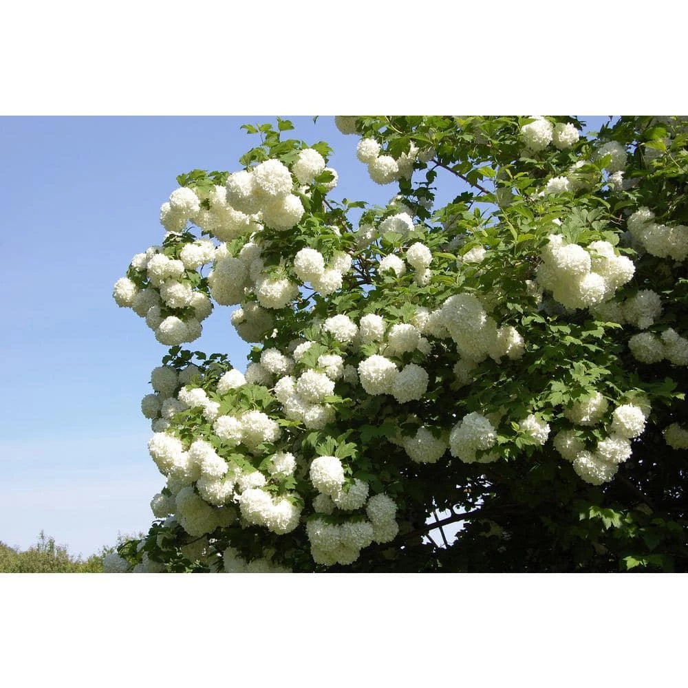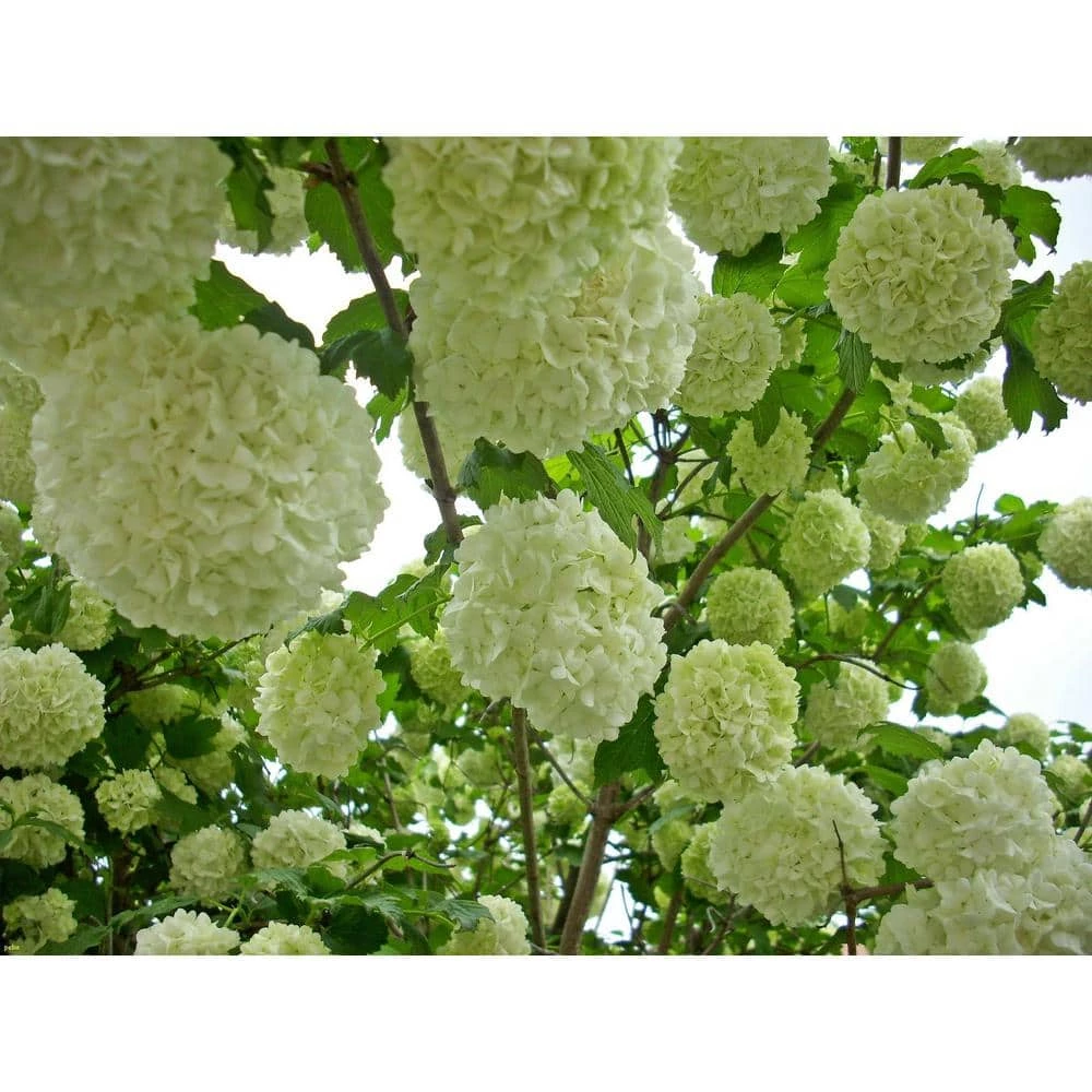 The Snowball Viburnum is 1 of the most popular ornamental shrubs in human history and goes by many names. There are very few other flowering shrubs which have remained as widely cultivated and beloved throughout the centuries and for good reasons. Firstly, the Snowball shrub puts on a floral display like no other with its perfectly rounded clusters of snow-white blossoms, appear as the same size and shape as a perfectly crafted snowball. Each floral snowball contains well over 100 blossoming florets that piece together to create the brilliant and symmetrical form for which the shrub was named. The Snowball shrub boasts exceptional hardiness, pest-resistance and drought-tolerance. Passed up by deer and insect pests alike, you’re also planting a sense of security along with your Snowball Viburnum. It would be a difficult task indeed to find another ornamental shrub possessing the same combination of beauty and resilience as the Snowball Viburnum. This shrub usually reaches a mature height between 8 ft. and 10 ft. and a mature spread between 5 ft. and 6 ft. Due to its larger size for an ornamental shrub, the Snowball Viburnum is an excellent choice for planting mixed-height shrub border, tall privacy screens and for filling open landscapes with its unique, pure-white, snowball-shaped globes of flowers.
