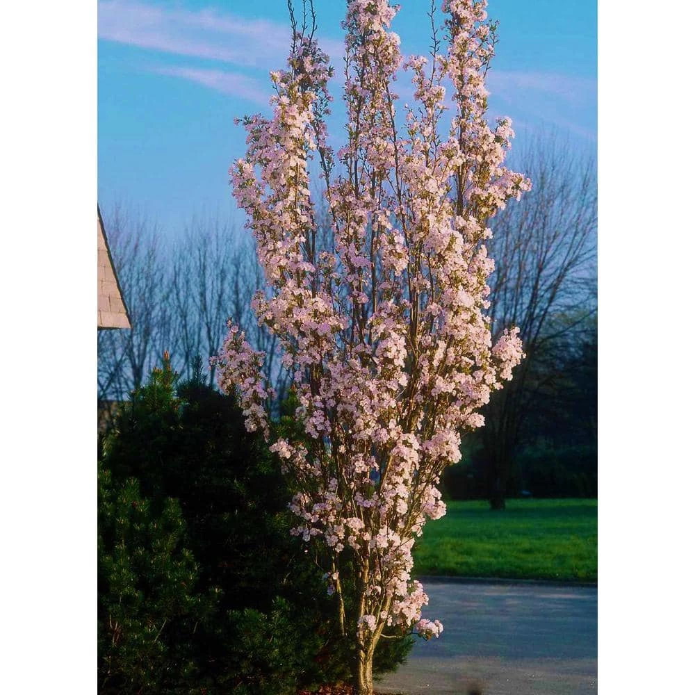 Due to its distinctly narrow and columnar form, Amanogawa is the ideal cultivar for smaller landscapes desiring the elegant and impactful presence only Cherry Blossoms can display. Large, semi-double, light pink saucer-shaped flowers carpet the upright branches when in full bloom. These aromatic and complex blossoms can measure up to 2 in. across and contain up to 15 petals layered onto a single flower. This tree has become especially popular in urban and suburban landscapes, as well as a low-maintenance sidewalk tree which reliably puts on a stunning display year after year. It has great seasonal ornamentation, with additional bright orange-red foliage in autumn. Amanogawa Cherry Blossom Tree, botanical name Prunus Amanogawa, is suited to USDA zones 5-9, with part to full sun. It reaches 15 ft. to 25 ft. H and remains incredibly narrow at only 8 ft. to 10 ft. W at maturity. The prolific blossoms of Amanagowa are a true spectacle that perfectly complement the overall columnar form of this tree, providing a virtual tower of blossoms every spring in even the smallest of landscapes.
