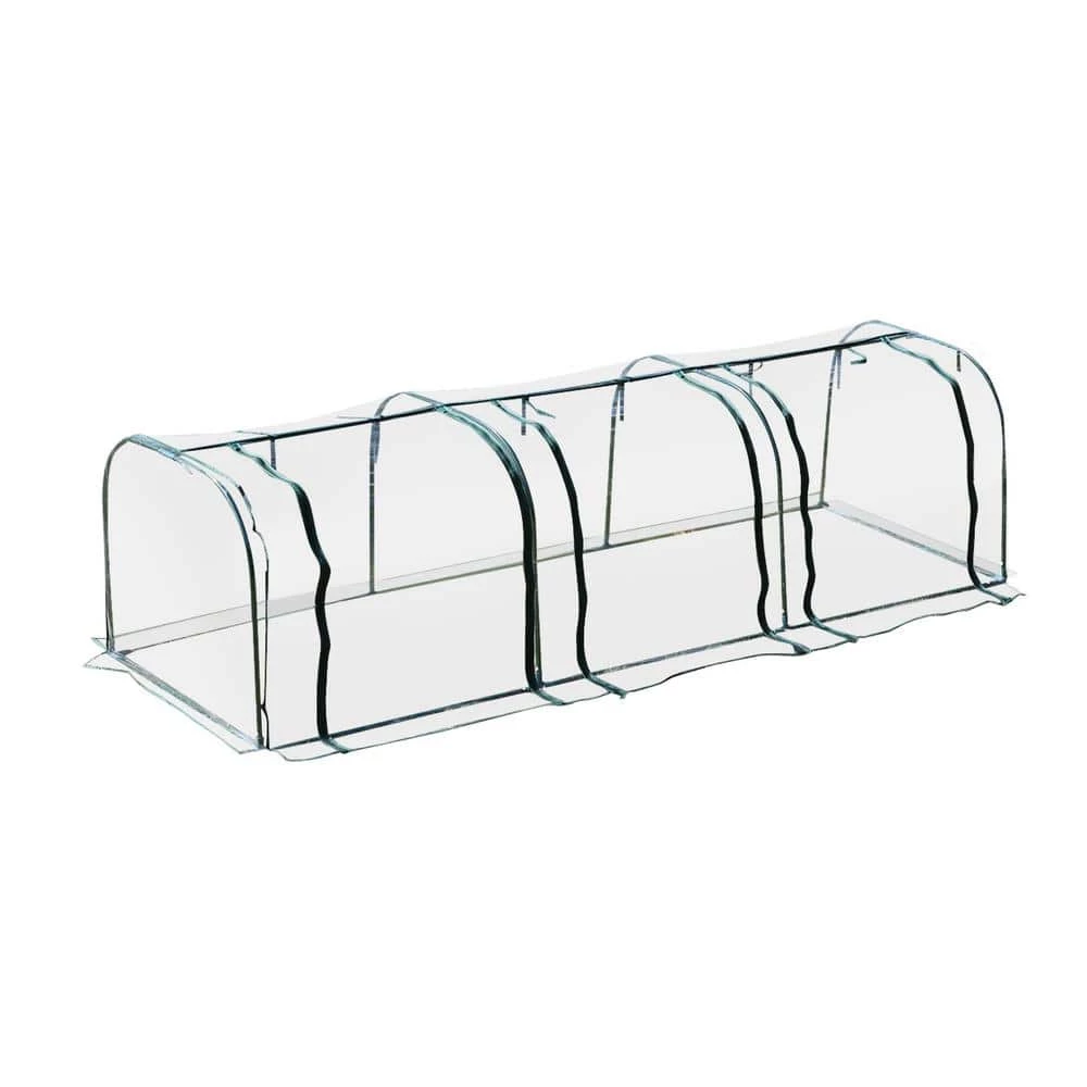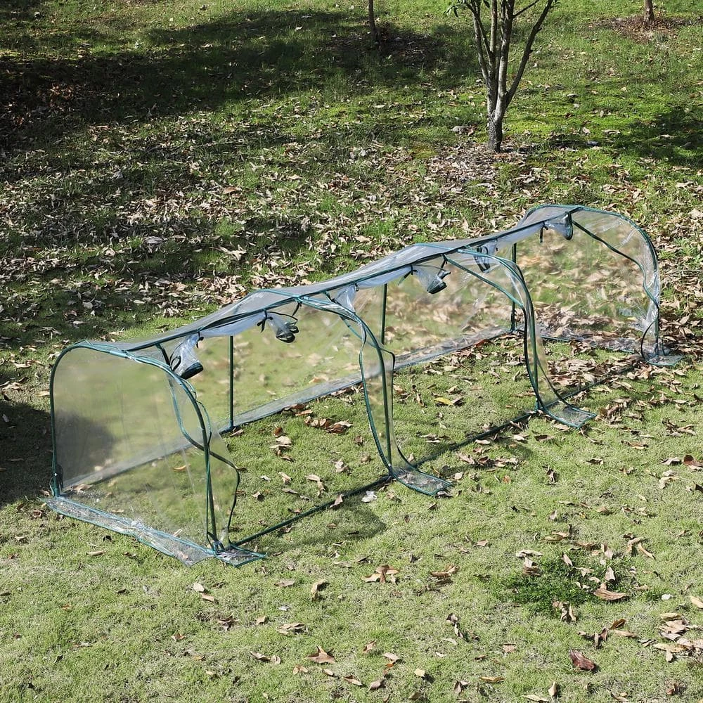This tunneled greenhouse from Outsunny is constructed using a solid steel pipe frame and durable PVC plastic cover. It’s perfect for seeding or just to protect your young plants from the outside elements, shielding plants from dust and wind and keeping out pests so that they thrive inside the proper temperature. The light-weight design is portable yet sturdy for long-lasting outdoor use. Double zippered roll-up side doors offer easy access and good ventilation. Simple assembly is required.
