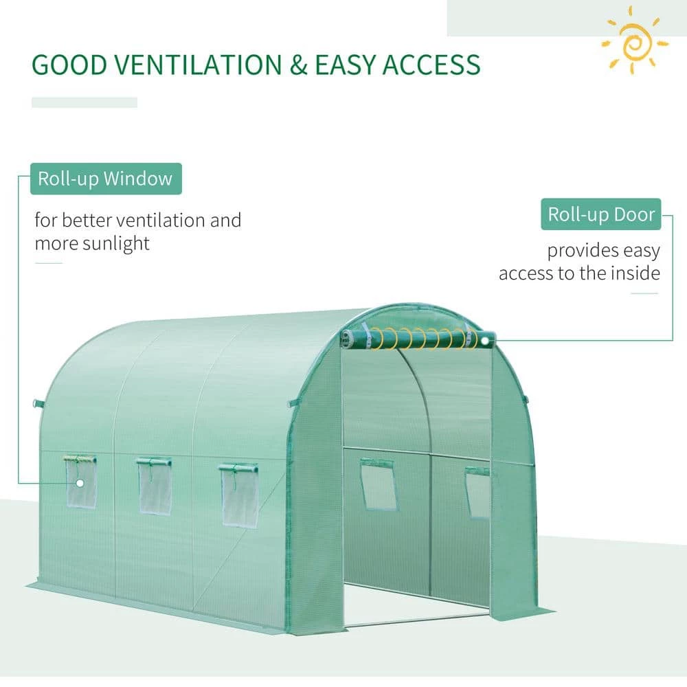 - Roll-up front entrance: a large zipped roll-up door built into the greenhouse provides easy access to the inside and can be attached to the top in order to stay open