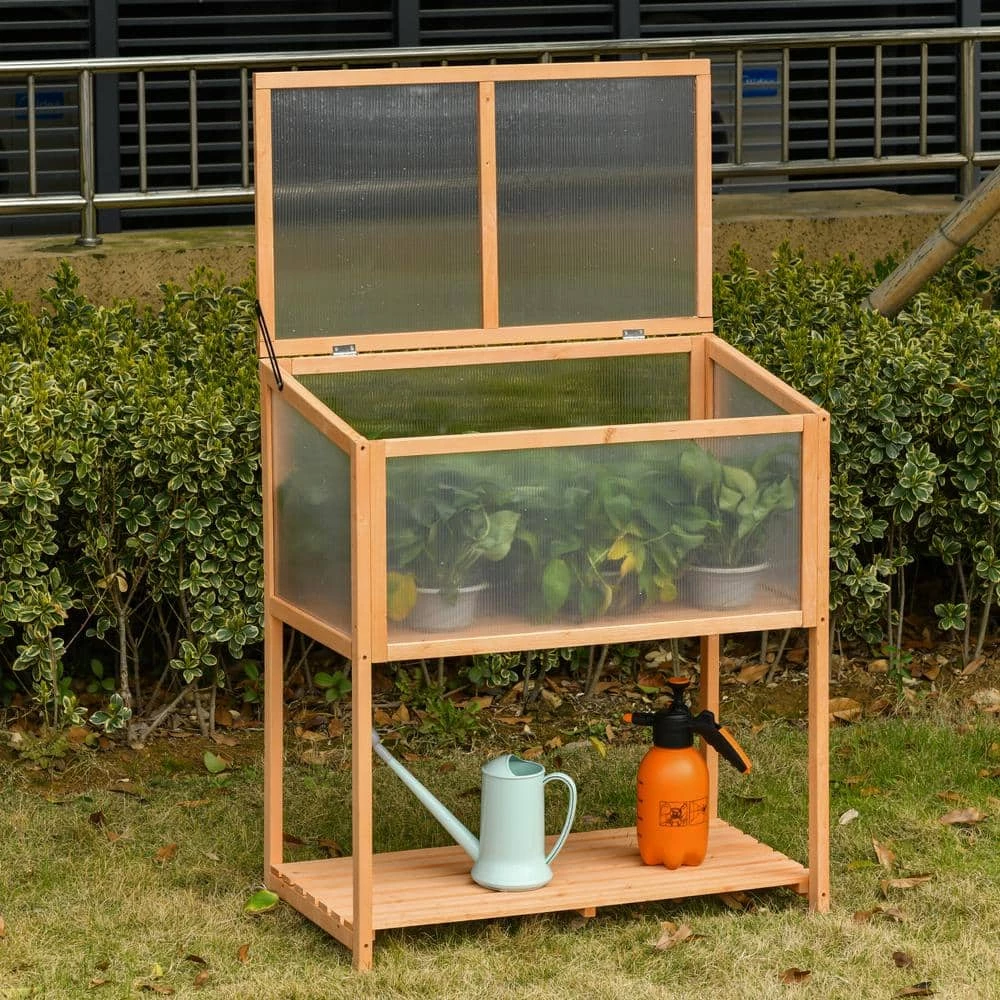 This raised garden bed from Outsunny has a simple and rustic appearance that can be a beautiful home for your lovely plants. Our hot house is made from a solid wood frame for reliability, with transparent panels to allow maximum light transmission while retaining heat for early seed sprouting or protecting plants late in the season. The raised legs of the small indoor greenhouse make planting more accessible, so your plants can enjoy the sunlight and thrive.