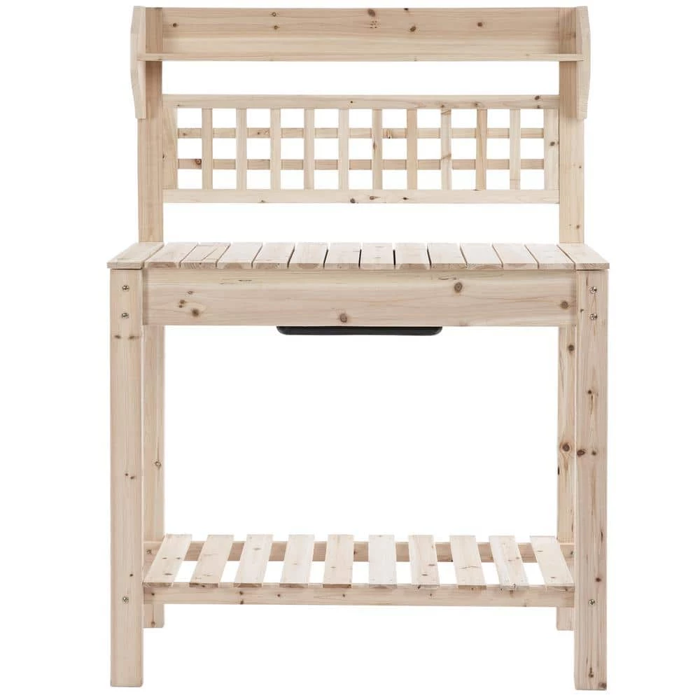 Check out this potting bench from Outsunny. While having a simple yet rustic appearance, the potting table has tons of flexible functionality that brings an awesome experience to you. The outdoor storage bench is made of high-quality fir wood, which not only makes is durable for the long run, but natural in the garden.