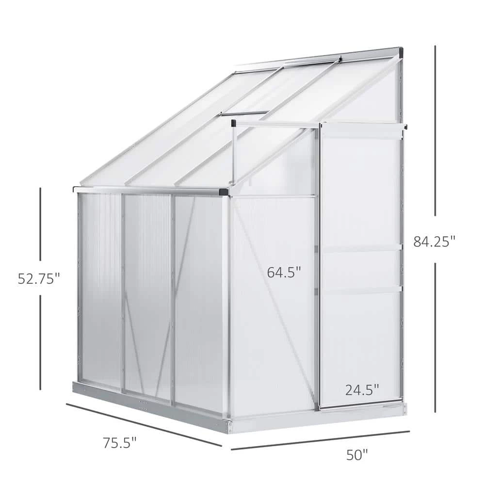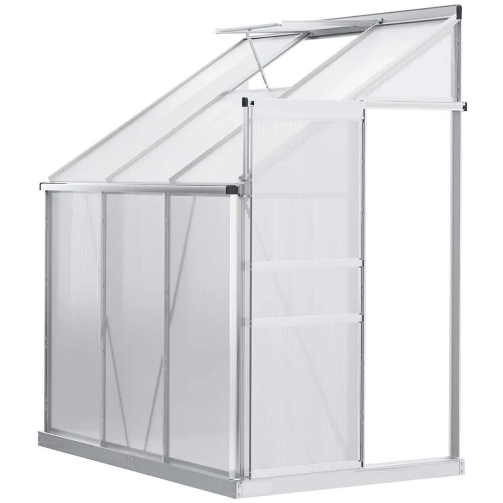- Lean-to-wall greenhouse with spacious design for growing flowers, vegetables, and fruits,