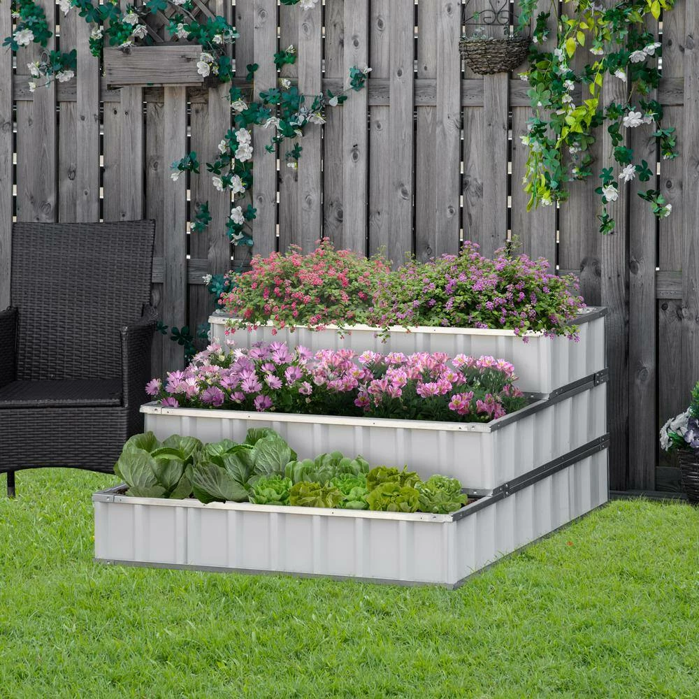 - Multiple configuration possibilities: 3 separate growing beds or 1 two-tier bed with 1 separate garden planting box
