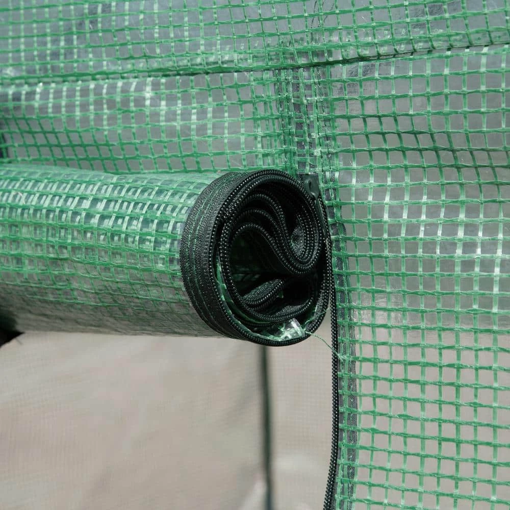 This walk-in garden greenhouse from Outsunny is perfect for the home gardening. The steel frame and PE cover will keep your plants and vegetables more secure than on their own. The roll-up design of the hot house ensures excellent ventilation for your plants, and the zipped door provides easy access for you to take care of them. Start your backyard gardening today with this Outsunny warm house throughout the-year.