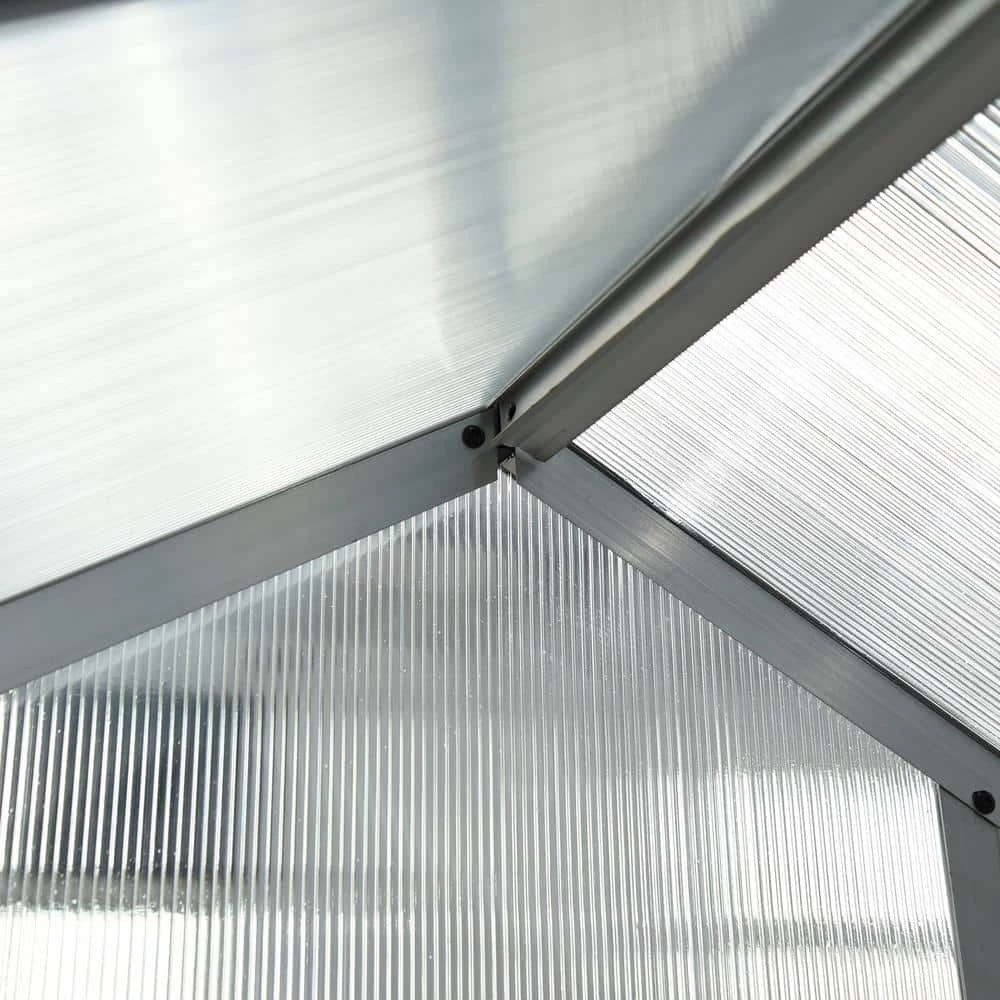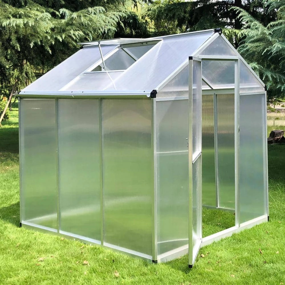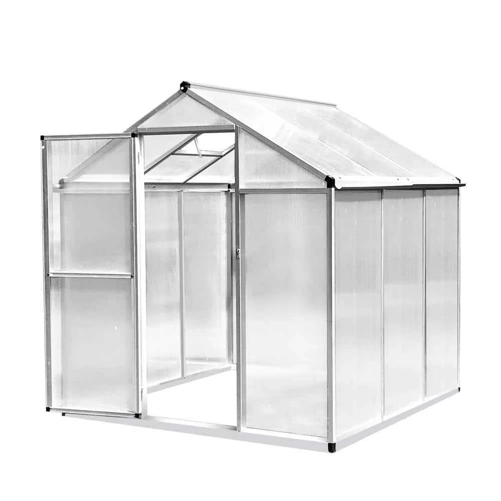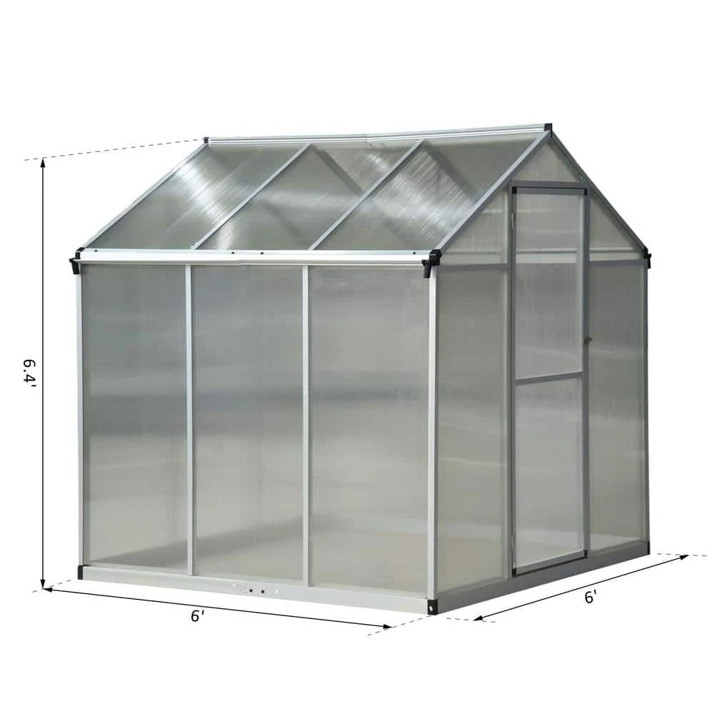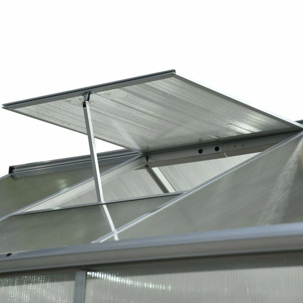 This Outsunny Stable walk-in garden greenhouse is perfect for the home gardening enthusiast who is looking for a way to stay in the soil all-year-round. It offers all the protection your plants need to thrive without having to spend a great deal of green yourself. The powder-coated aluminum frame and polycarbonate sheets will keep your plants, vegetables and herbs safe. These transparent sheets allow natural lighting to pass throughout the entire structure. 1 rooftop vent ensures excellent ventilation for your greenhouse. Easy to assemble and take down, our Outsunny transparent aluminum greenhouse is the ideal solution for keeping your plants happy and healthy throughout the entire-year.
