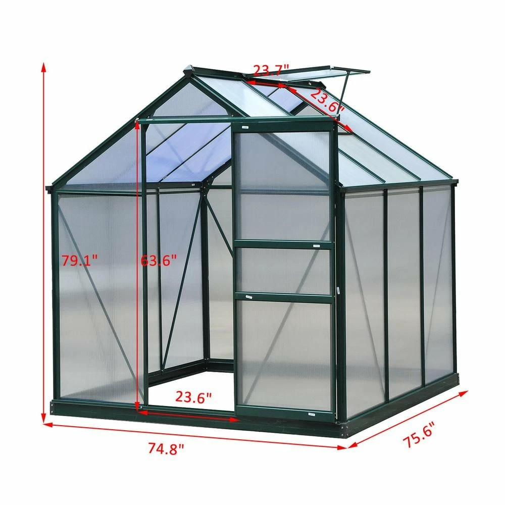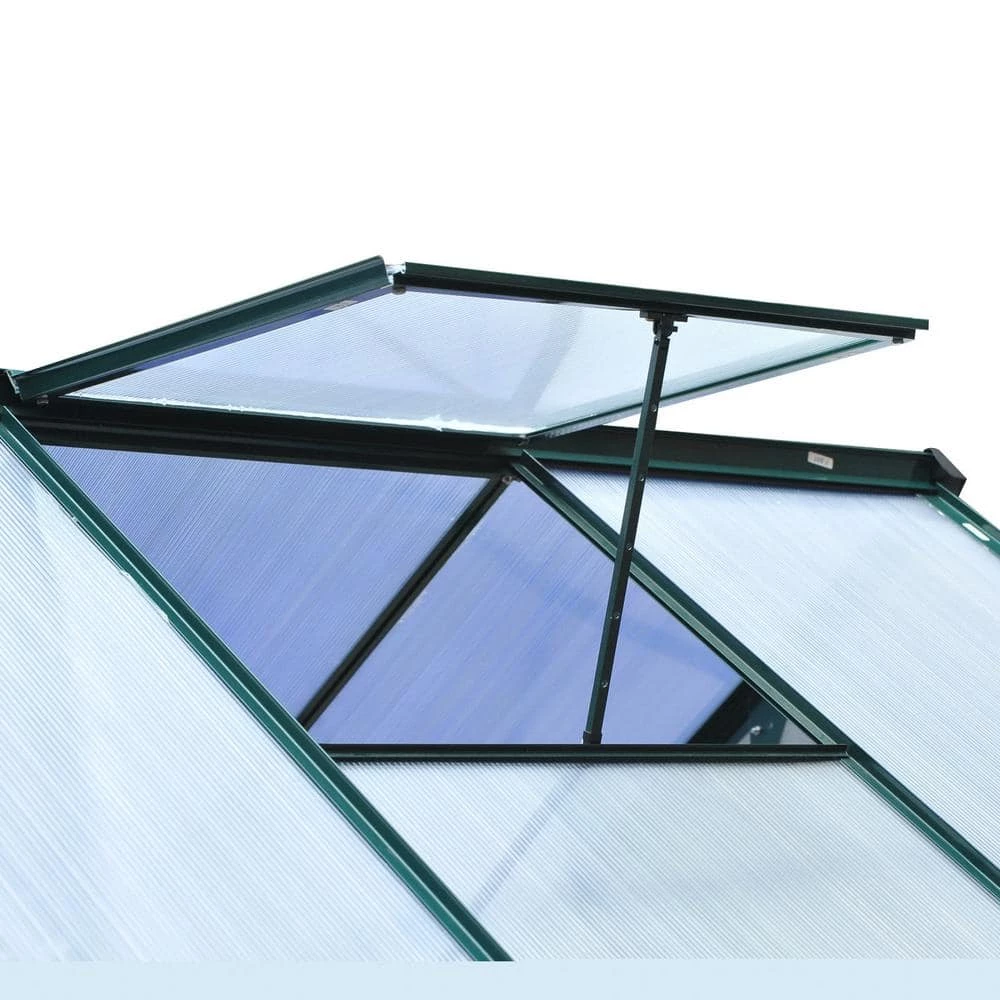 This Outsunny 6 ft. L x 6 ft. W x 6.5 ft. H polycarbonate mini walk-in greenhouse kit is perfect for the home gardening enthusiast who is looking for a way to stay in the soil all year-round. It offers all the protection your plants need to thrive without having to spend a great deal of green yourself. The powder-coated aluminum frame and UV-resistant, polycarbonate sheets will stand up to the elements. These transparent sheets allow natural lighting to pass throughout the entire structure. A rooftop vent ensures excellent ventilation for your unit. A convenient single sliding door design provides easy access to the inside. Easy to assembly and easy to move or take down, our Outsunny polycarbonate aluminum greenhouse is the ideal solution for keeping your plants happy and healthy throughout the year.