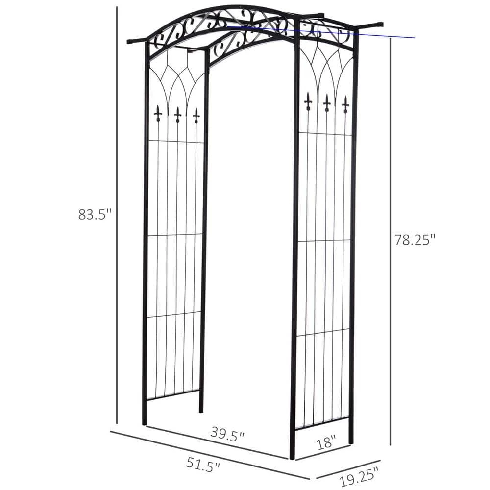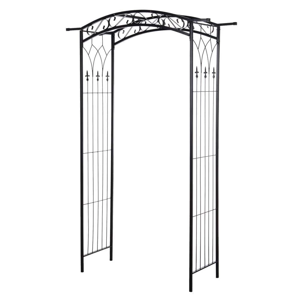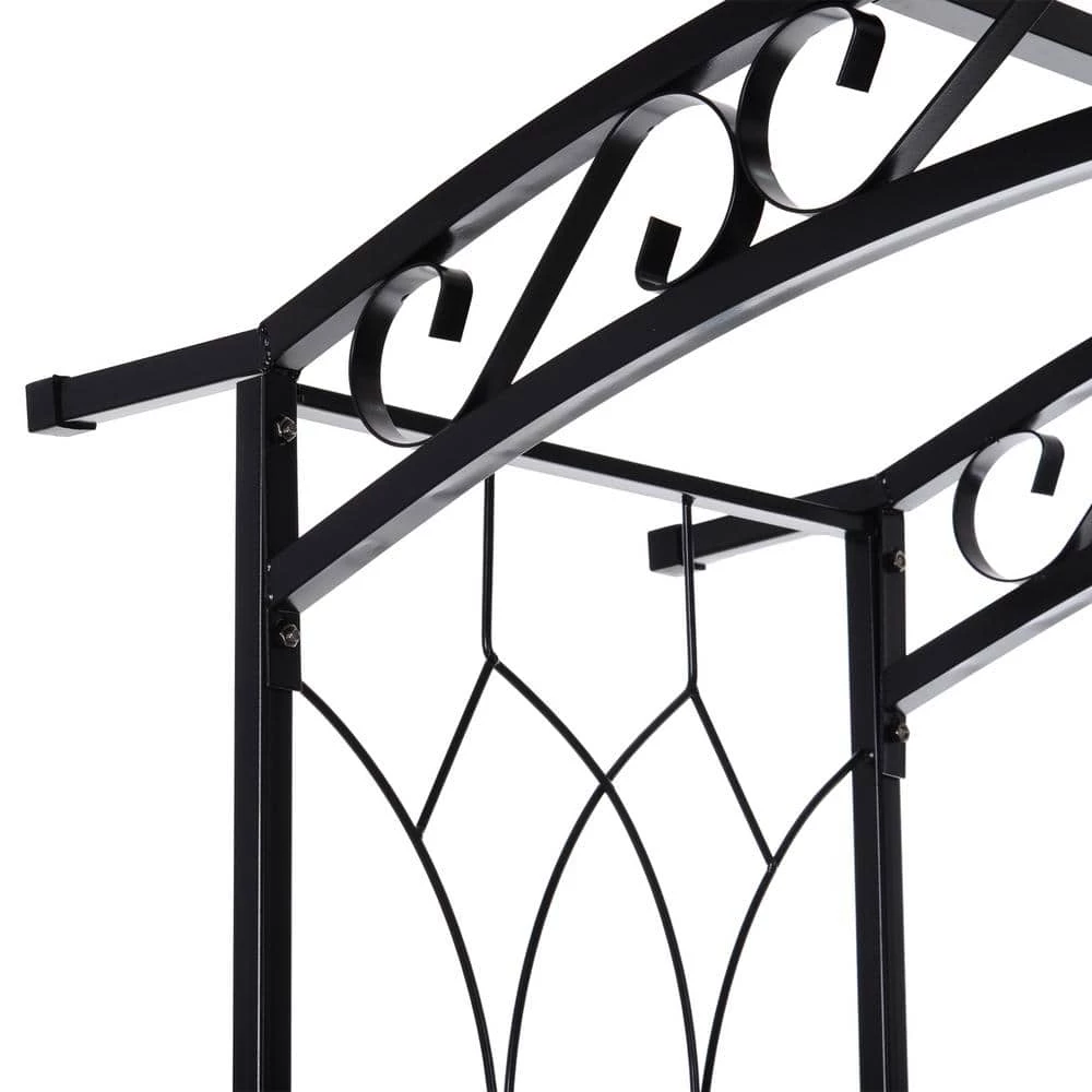 Bring a little southern charm to your garden with elegant and delicate scrollwork from Outsunny. Constructed of a powder-coated matte black metal frame, this garden trellis will easily blend into your already beautiful garden. The top horizontal bars provide structural support as well as an ideal place to hang light-weight potted plants. The garden arch is perfect for supporting light-weight climbing plants and vines. Display small hanging accents on this garden arbor in order to create a beautiful entry into your garden. Perfect addition to weddings, ceremonies and other outdoor events.