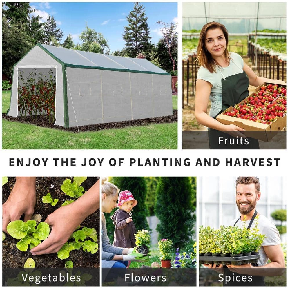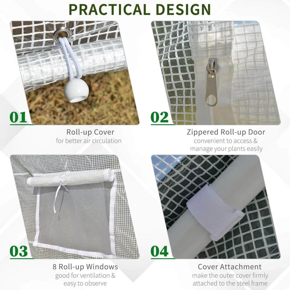 - Roll-up door and windows: the zippered roll-up door can be opened fully for easy access and transport of plants or tools, the 8 windows of the hot house can roll up with yarn and they provide great air circulation for plants, they can also work as observation windows to observe the growth of plants