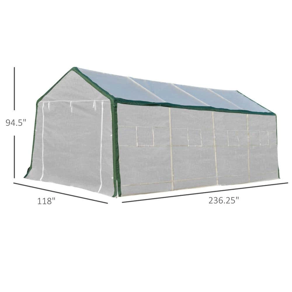 - Plant nursery greenhouse dimensions: overall dimensions: 19.7 ft. L x 9.8 ft. W x 7.9 ft. H, door size: 5.5 ft. L x 6.6 ft. W