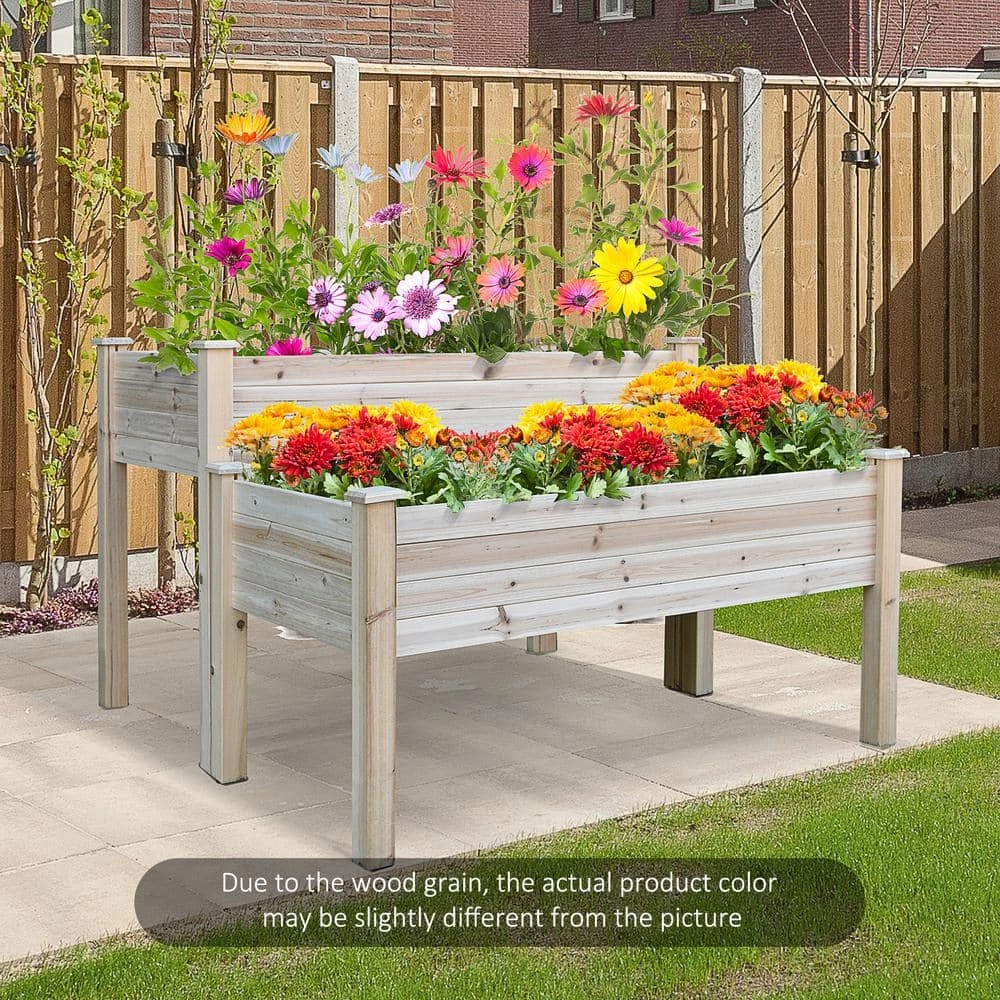 Let natural beauty lead the way in your garden this season with this raised garden bed from Outsunny. The 2-tier design of our planter box ensures flowers, vegetables, and herbs have plenty of room to grow and flourish. Meanwhile, the elevated levels of the garden box means you won’t have to bend down or strain your body while looking after your green friends. Our plant box is made of fir wood frame to ensure a solid and sturdy core. Drainage holes on the bottom allow extra-water to leave, with thick legs to ensure stability on the ground. Perfect for growing indoors and outdoors.