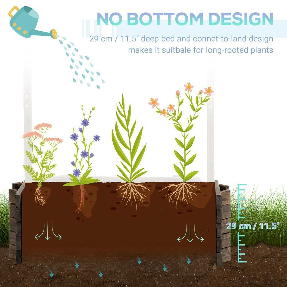This Outsunny planter box can satisfy your desire to build a wonderful garden in your yard. The practical design of the vegetable planter makes it easy for growing your favorite flowers, fruits, herbs, veggies, or plants in just about any location. Made from fir with carbonized surface, the garden box is corrosion resistant and durable. The exquisite and fairy tale style ancient well modeling makes this herb garden both good-looking and useful.