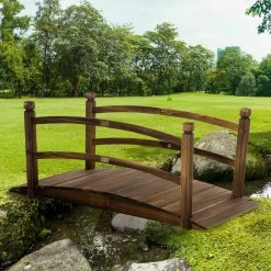 Outsunny Brown 4.7 ft. Wooden Arc Footbridge with Side Rails